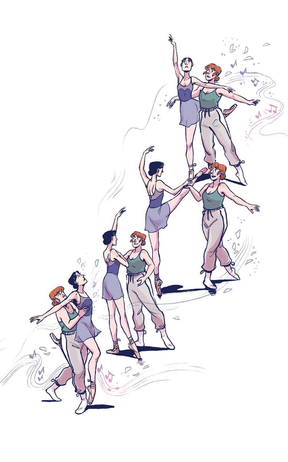 Two graphic novels about lesbians jumping and twirling